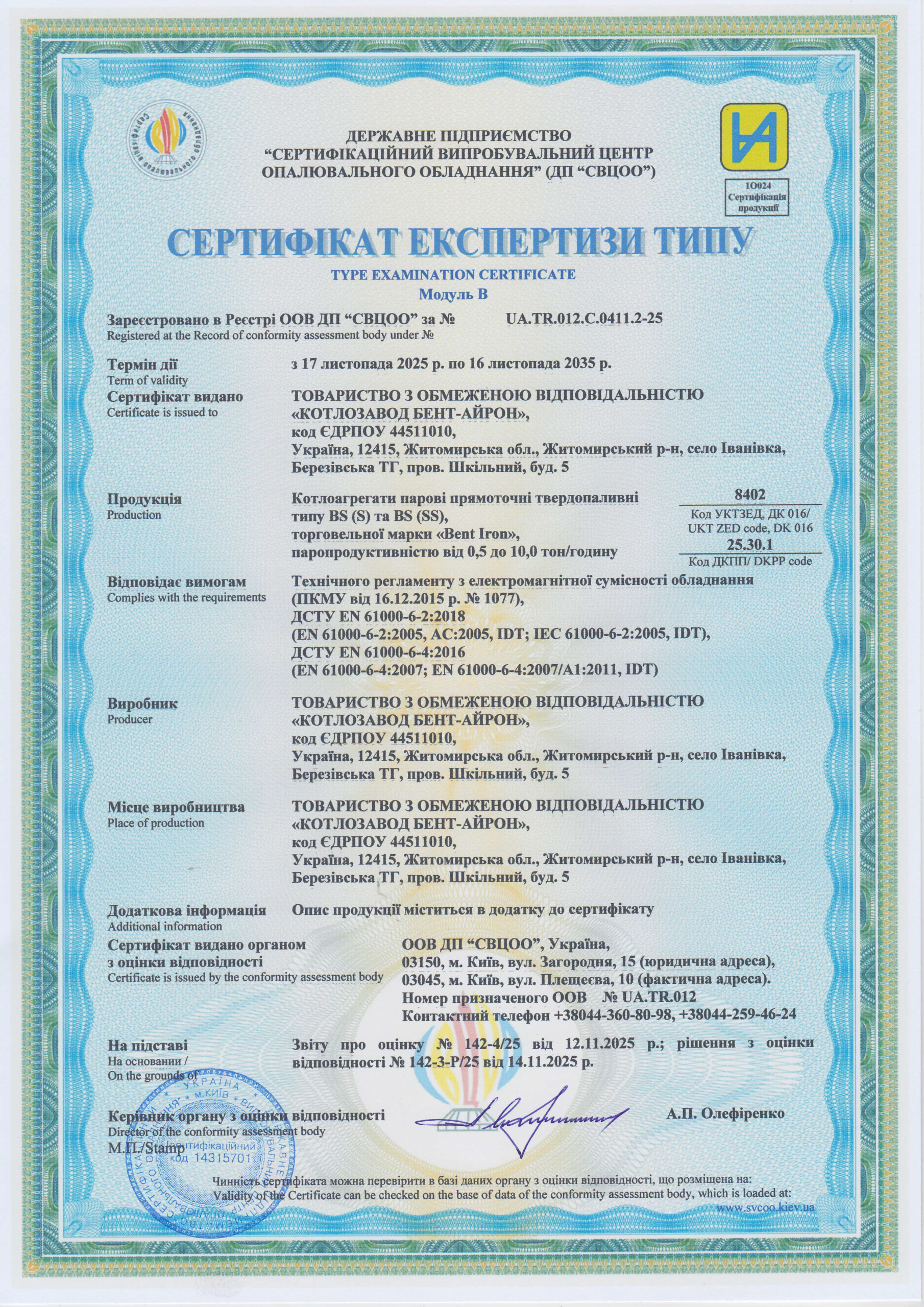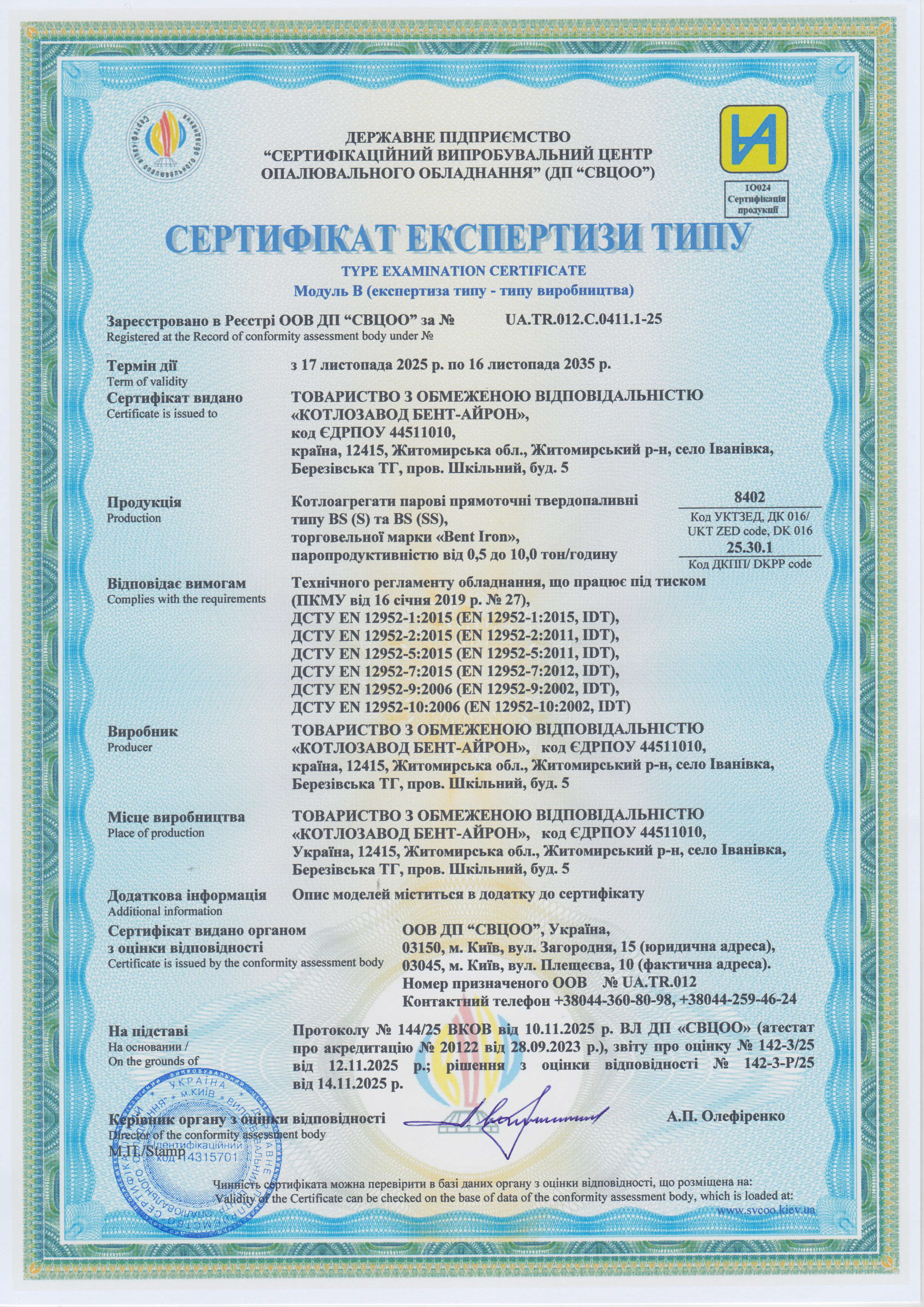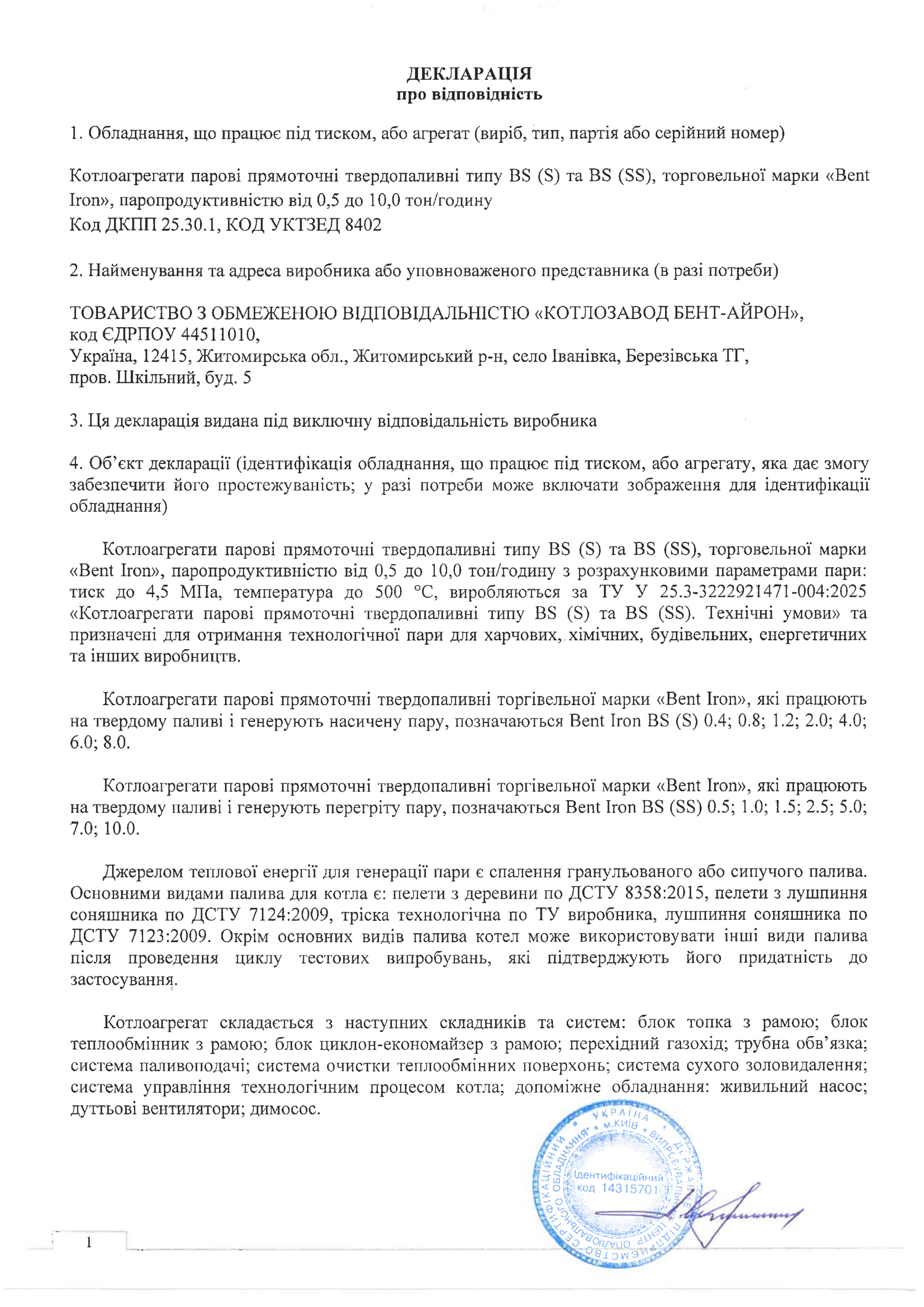 модельний ряд твердопаливних парогенераторів «BENT-IRON»