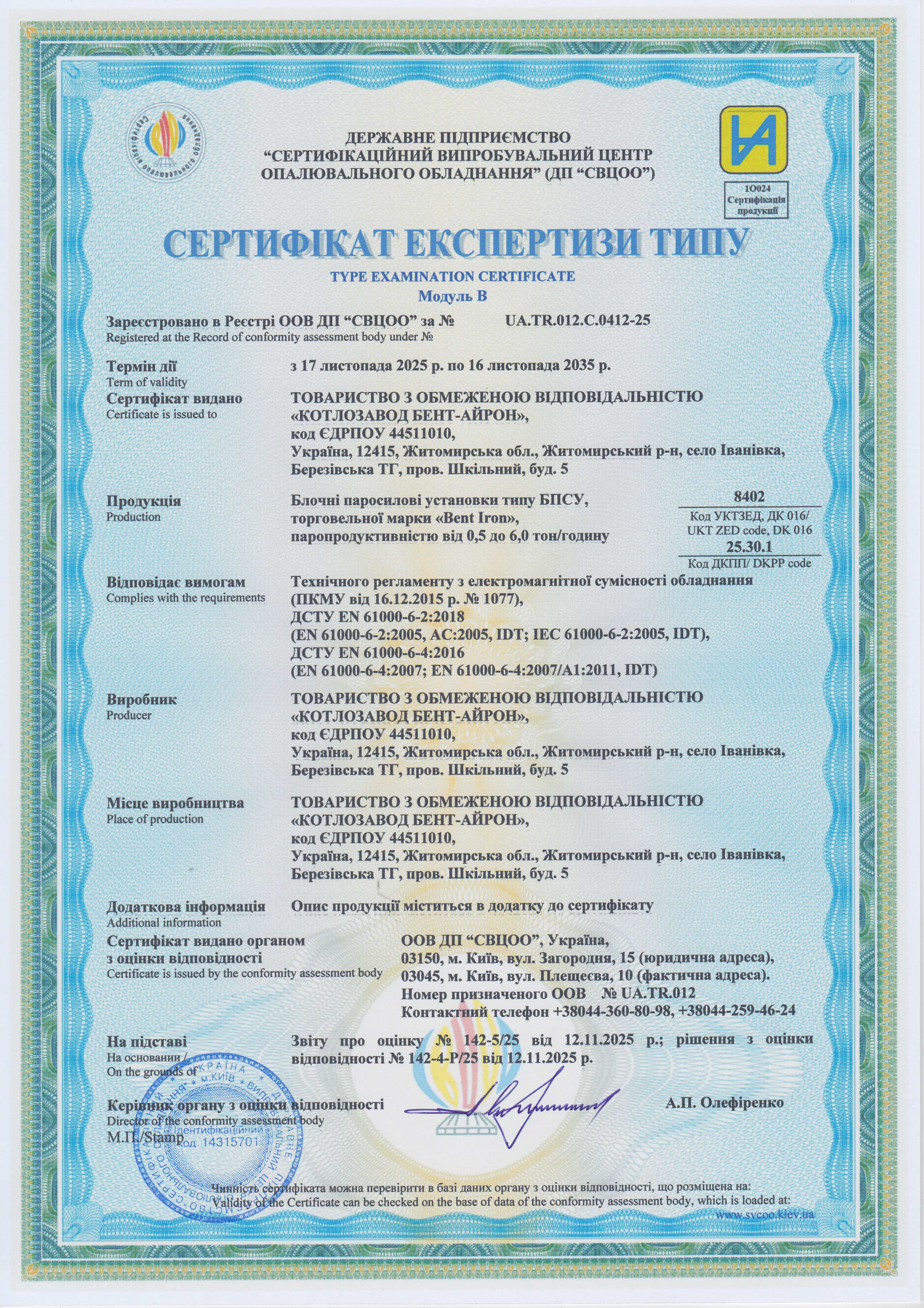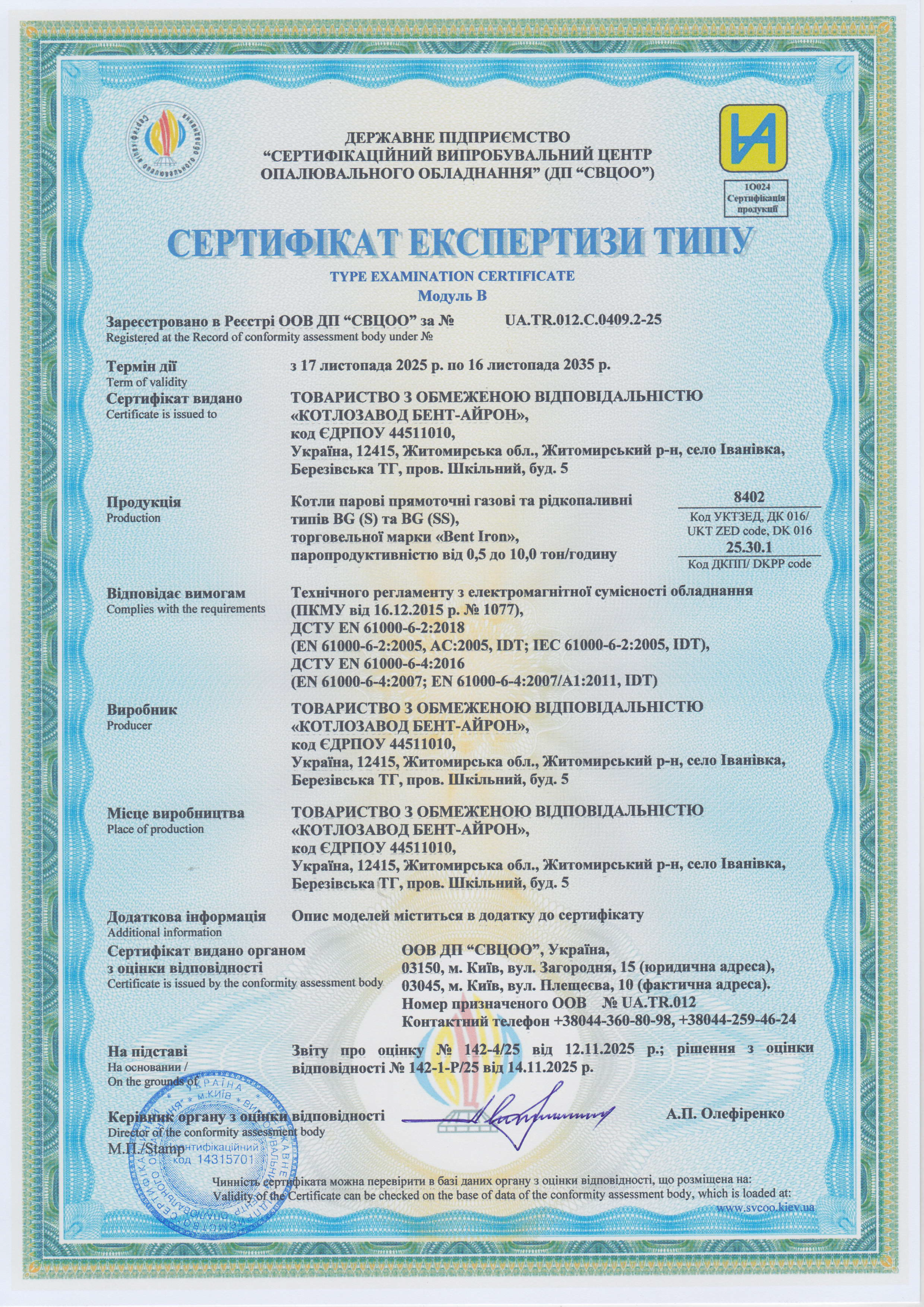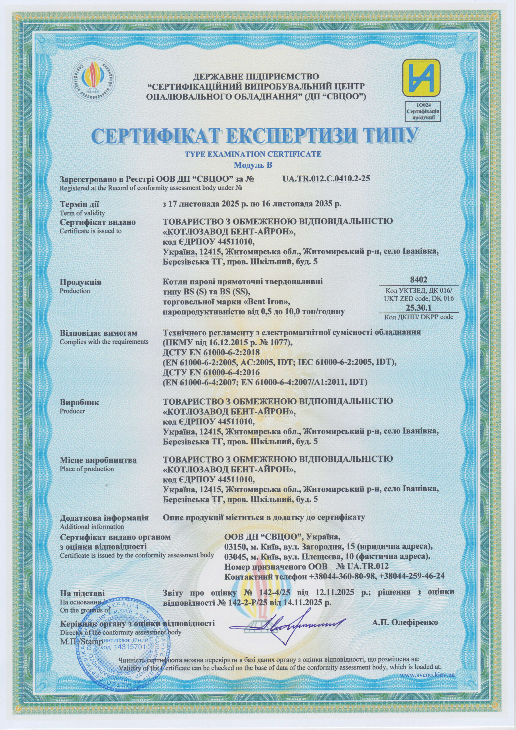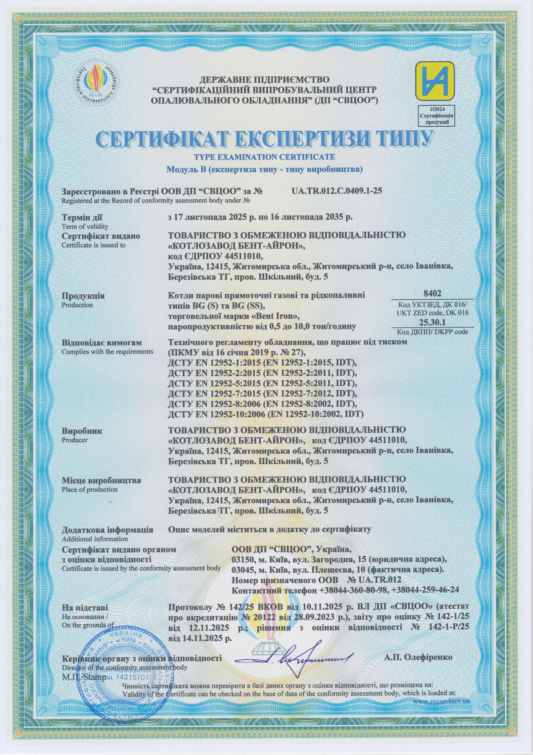 модельний ряд твердопаливних парогенераторів «BENT-IRON»